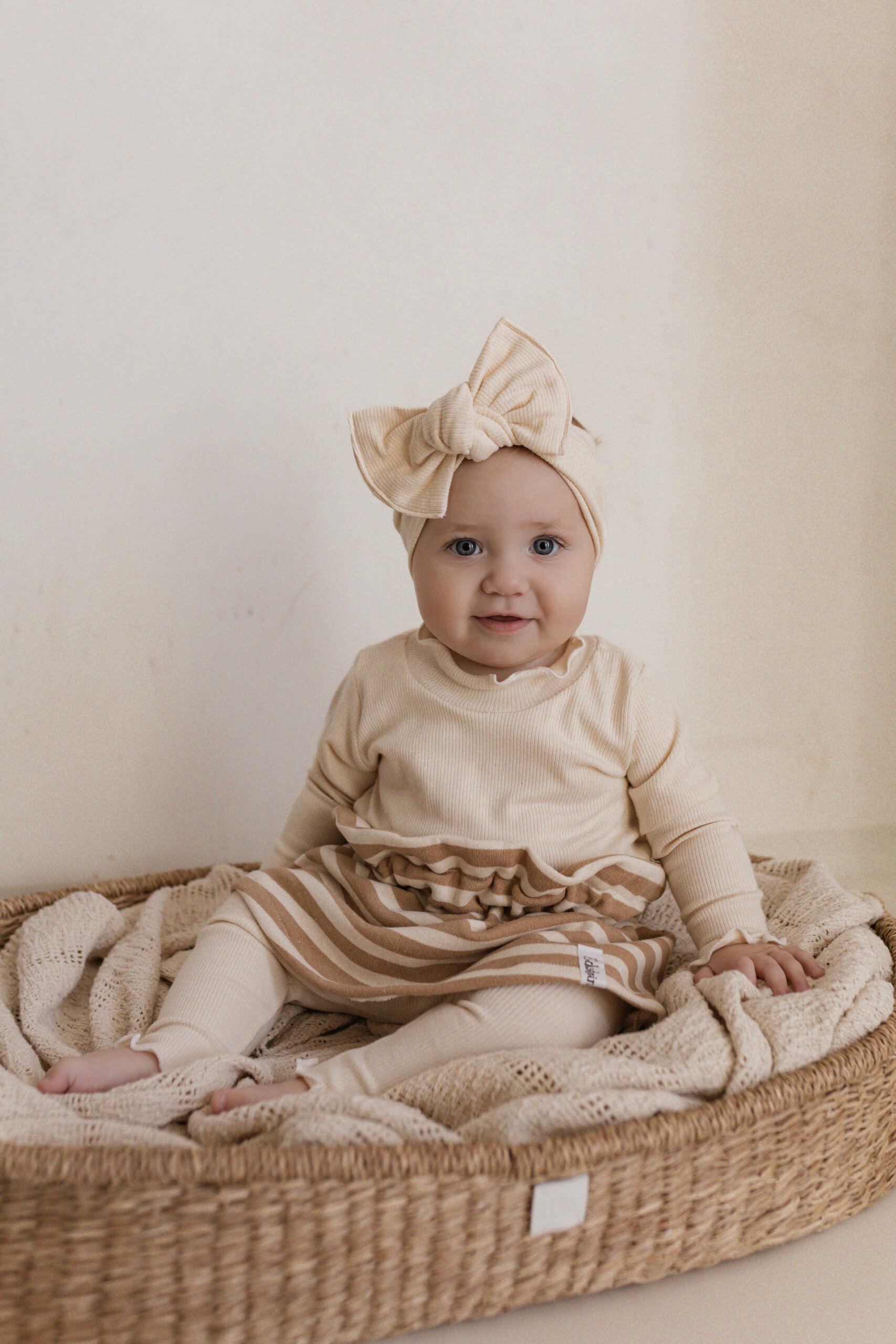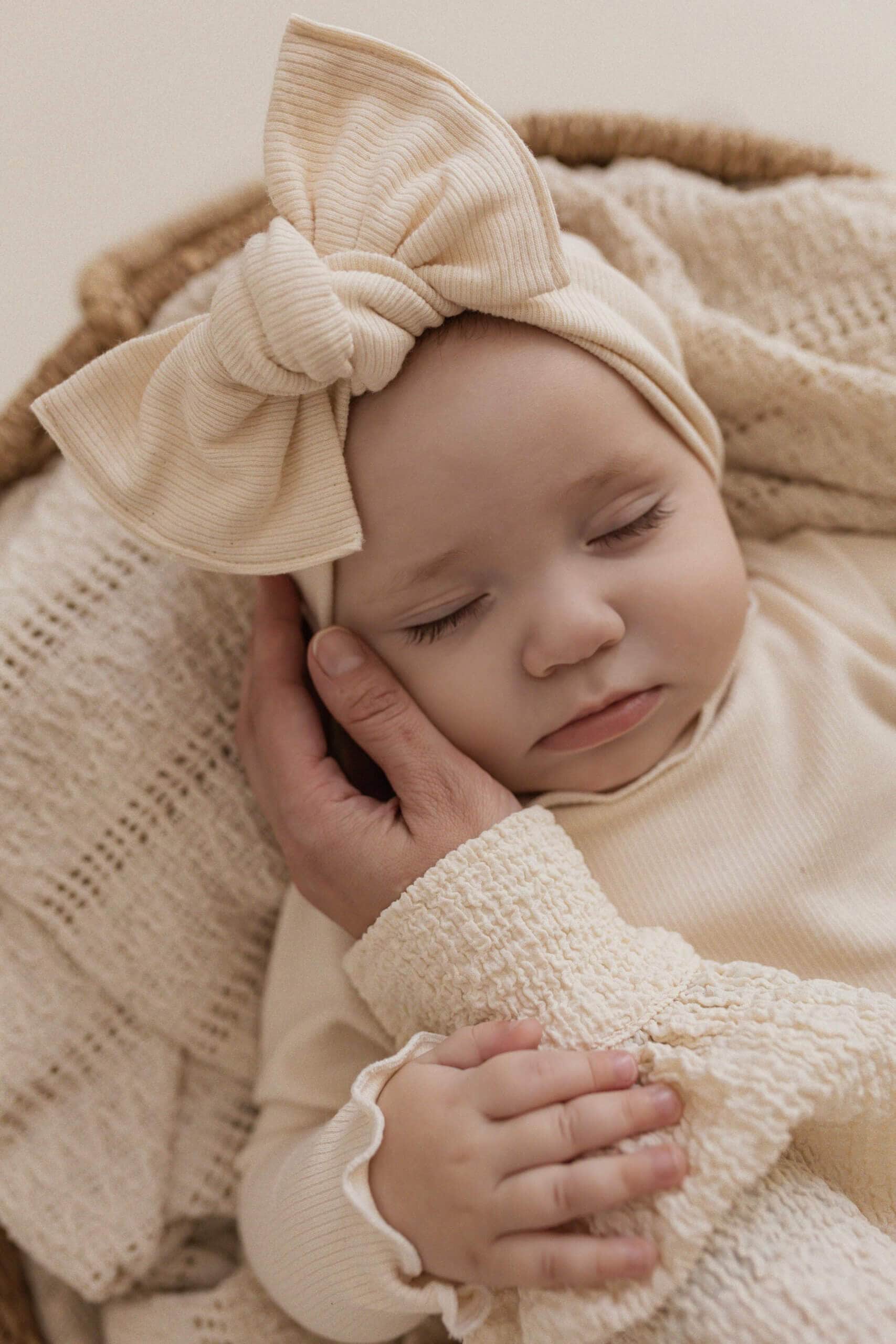 Schönes Stirnband mit Schleife aus elastischen Stoffen. Perfekt an windigen Tagen.