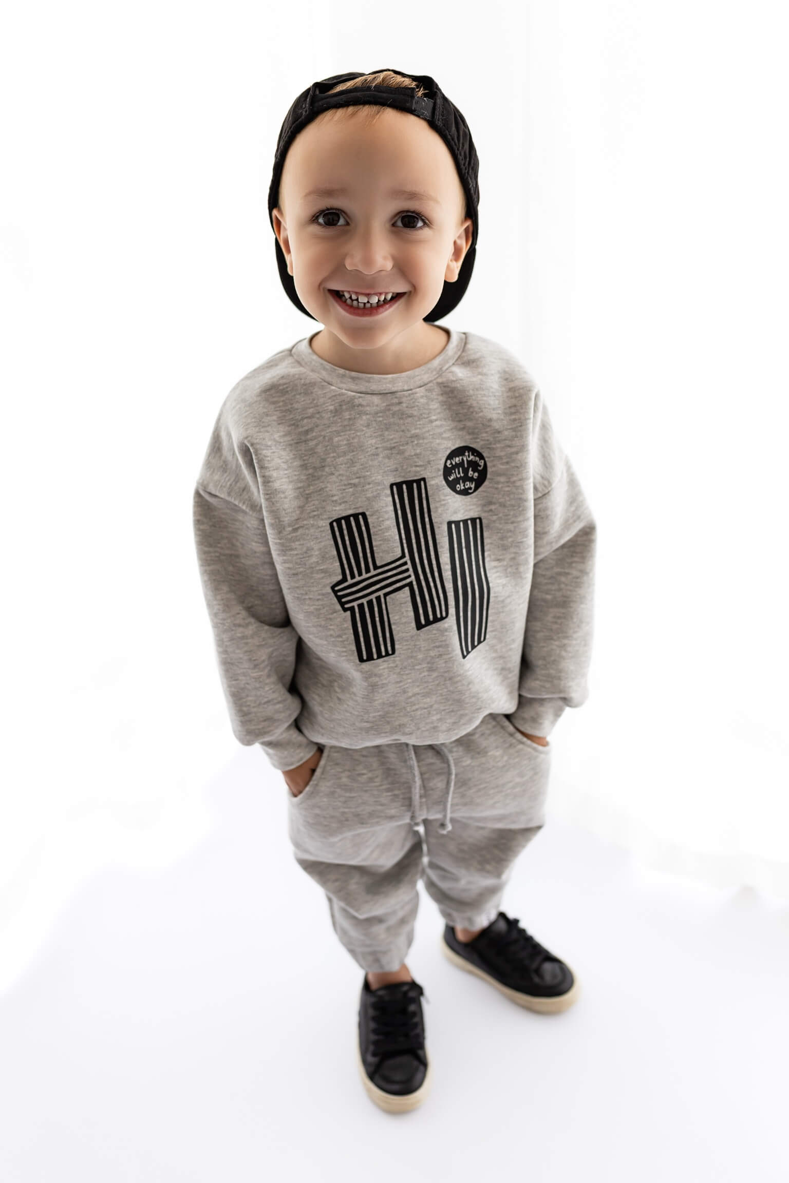 Der Sweater fällt leicht oversize aus. Auf den Bildern siehst du die Farbe hellgrau (Kuschelsweat).