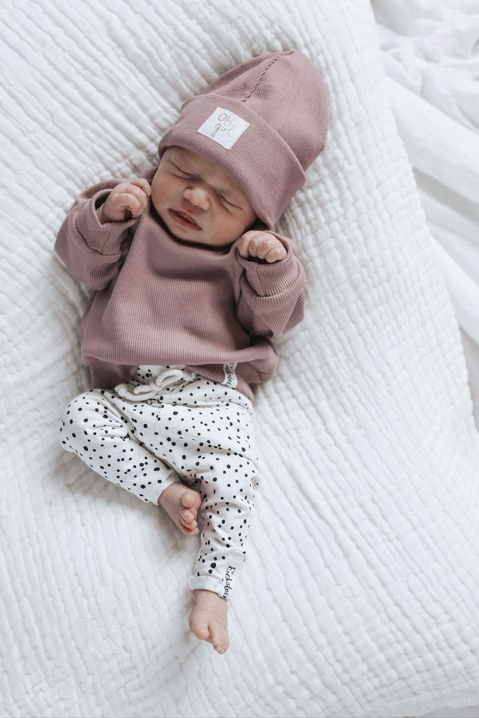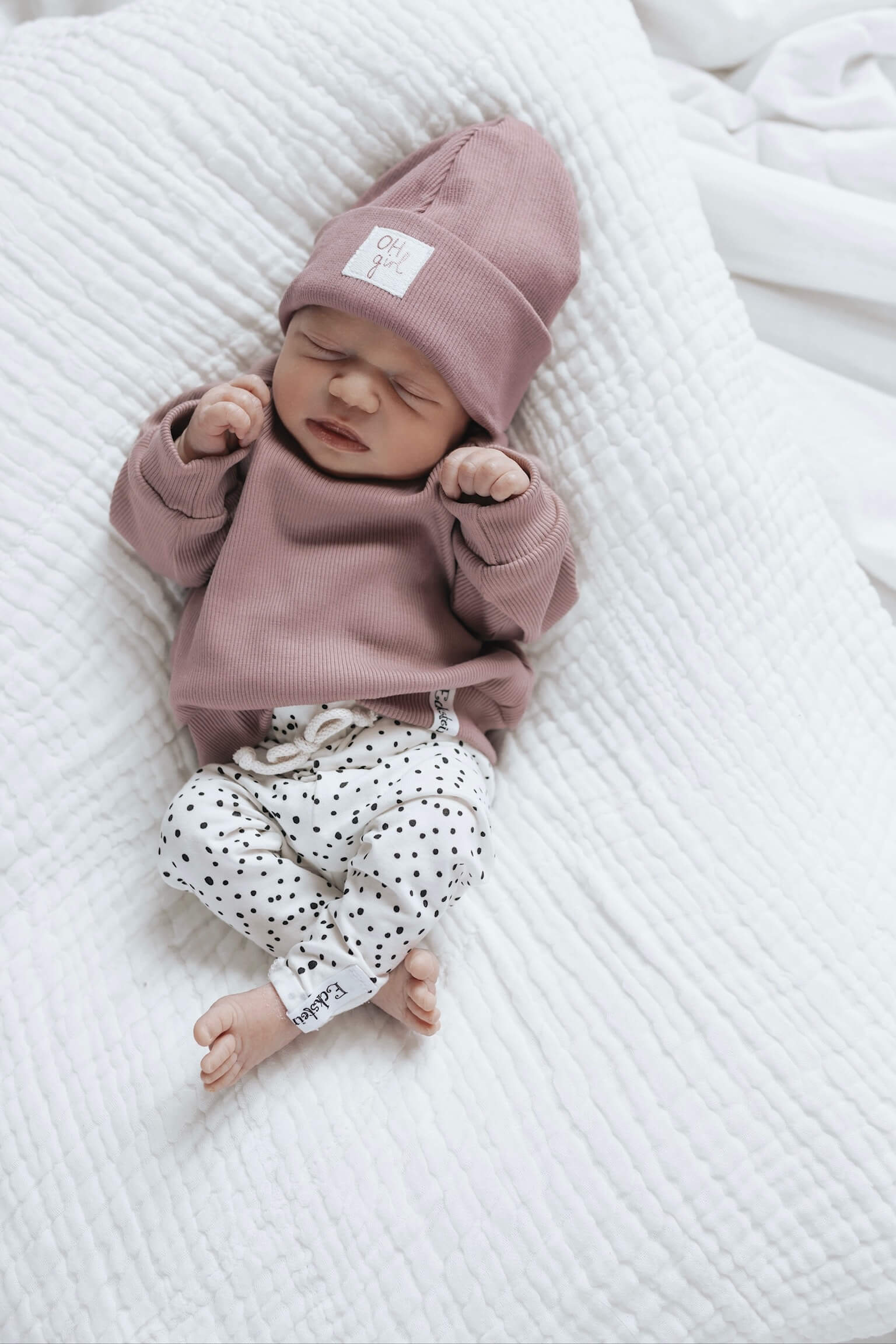 Unsere Punkte Leggings für große und kleine Kinder aus Jersey, fällt größengerecht aus und wächst lange mit. Hoher Schnitt mit weichem Gummibund der nicht Rutsch oder einschneidet.