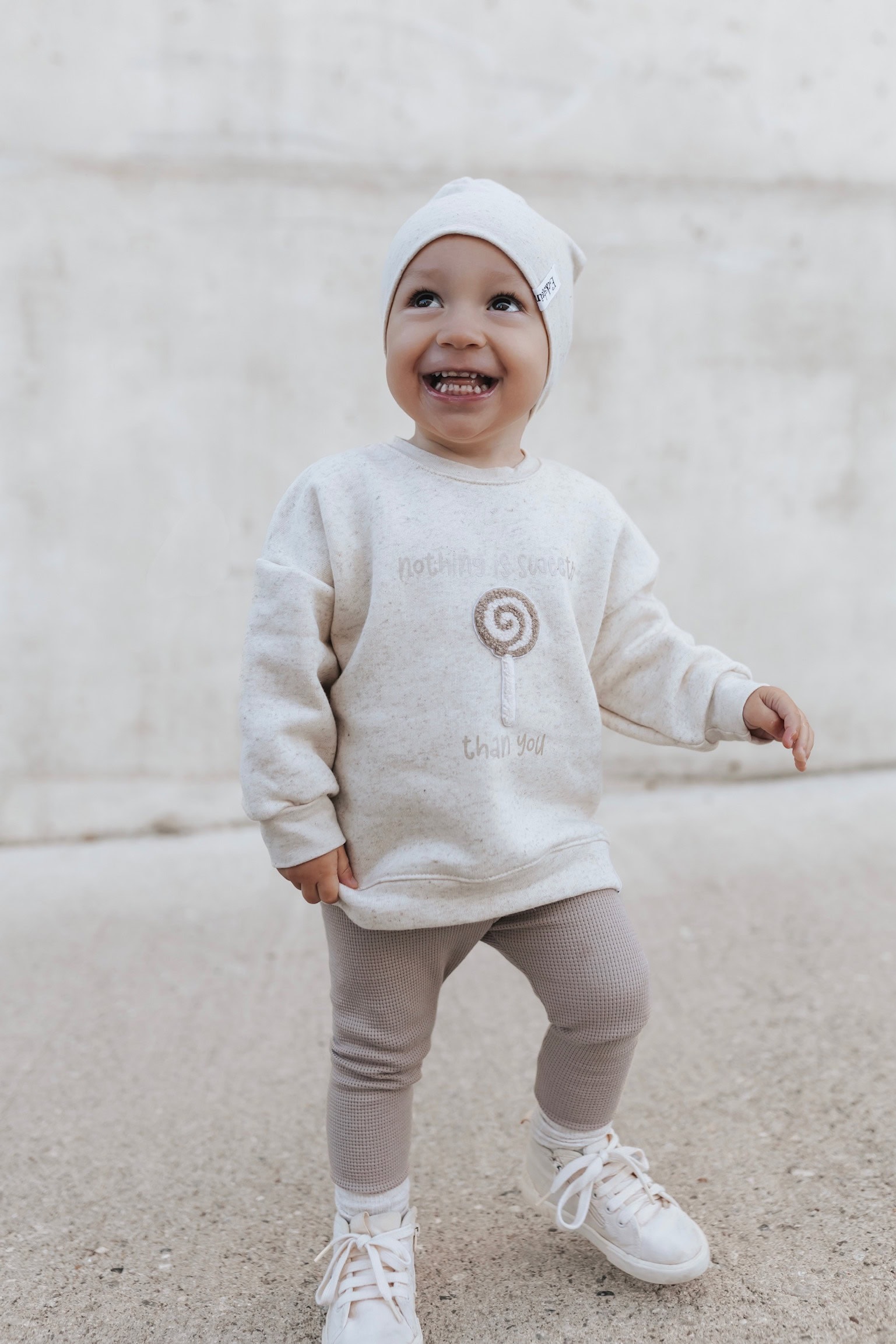PASSFORM: Der Sweater fällt oversize aus. Auf den Bildern seht ihr den Kuschelsweat in der Farbe Natur Sprenkel.