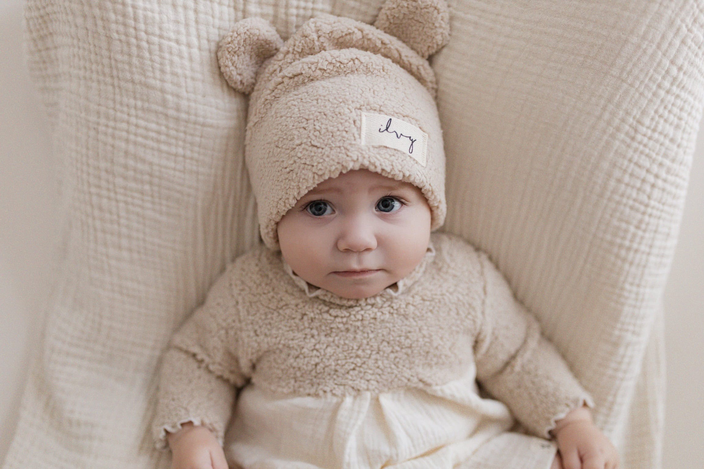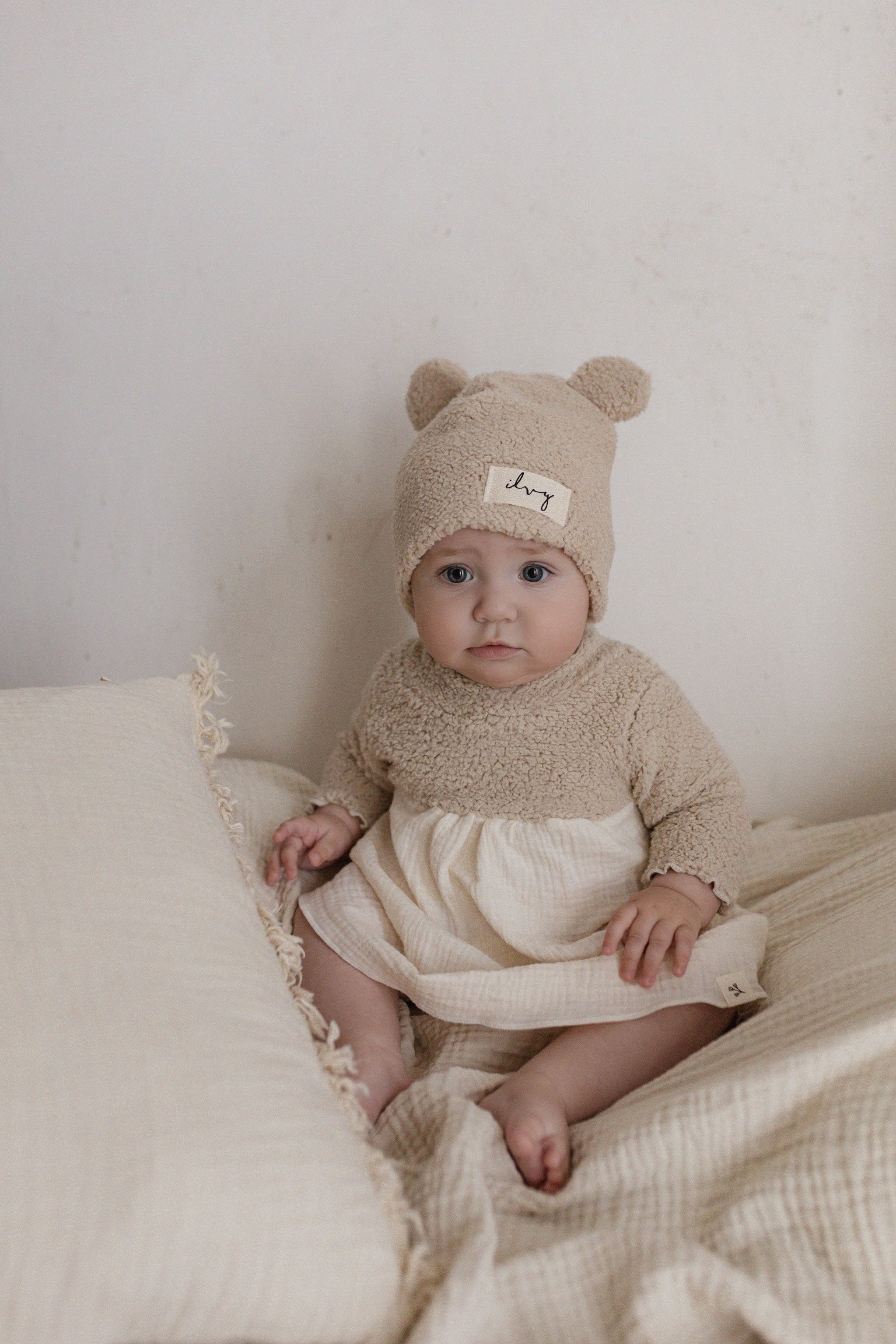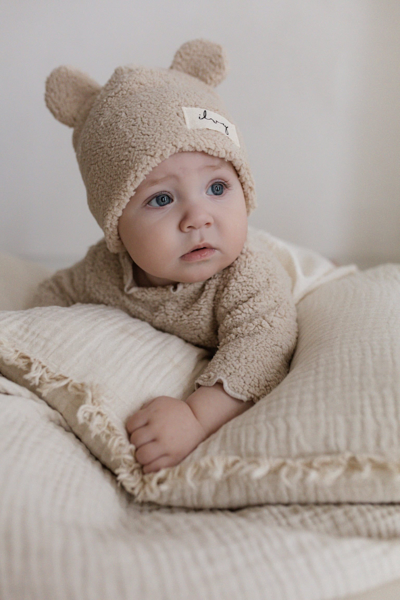 Teddy Mütze aus Teddystoff mit oder ohne Bärenohren. Auf dem Titelbild seht ihr die Farbe helles beige. Aktuell ist diese Farbe nicht verfügbar. Dafür eine leichte Nuance dunkler in der Farbe dunkles beige.