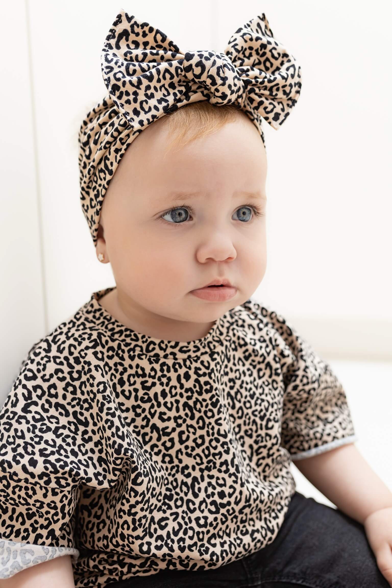 Schönes Stirnband mit Schleife aus elastischem Stoff. Durch den Knoten kannst du die Größe selbst variieren.